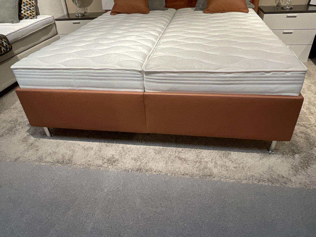 Bezug: B-2090 + A-1111Farbe: RostLiegefläche 180 x 200 cmB 220 x 213 cm, KTH: 120 cmBSH: 63 cmMatratzen: ARUBA KaltschaumHärte: 2 + 3mit Bettkasten, Springaufbeschlagohne Kissen und Dekoration!ABHOLPREIS!