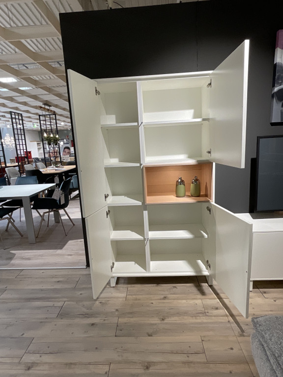 Einzelelement 31160 + 86393Lack weiß mattB 100,7 x H 190,9 x T 39,9 Cmmit Metallkufe weiß lackiertoffenes Fach Kristallbuche furniertmit LED- Beleuchtunggrifflos - Push to openohne Dekoration!ABHOLPREIS !